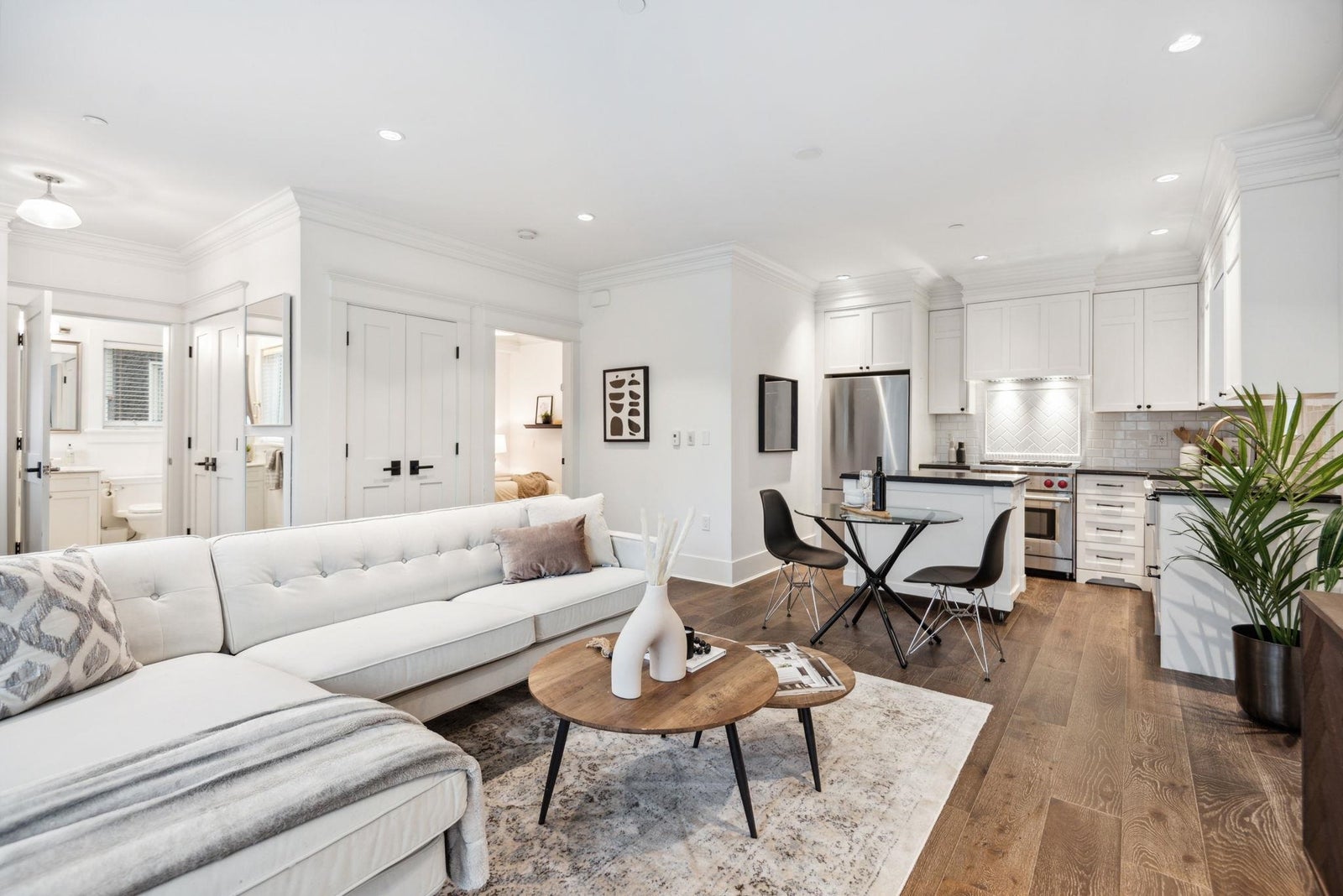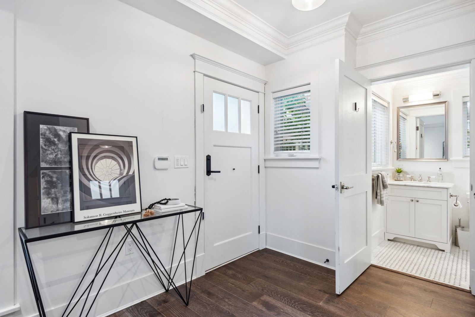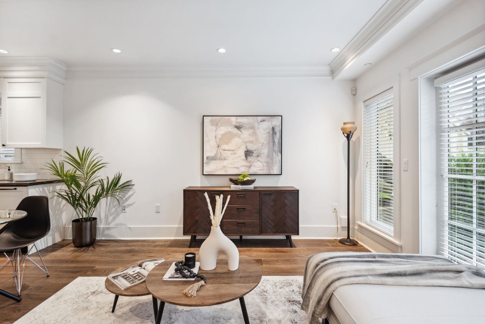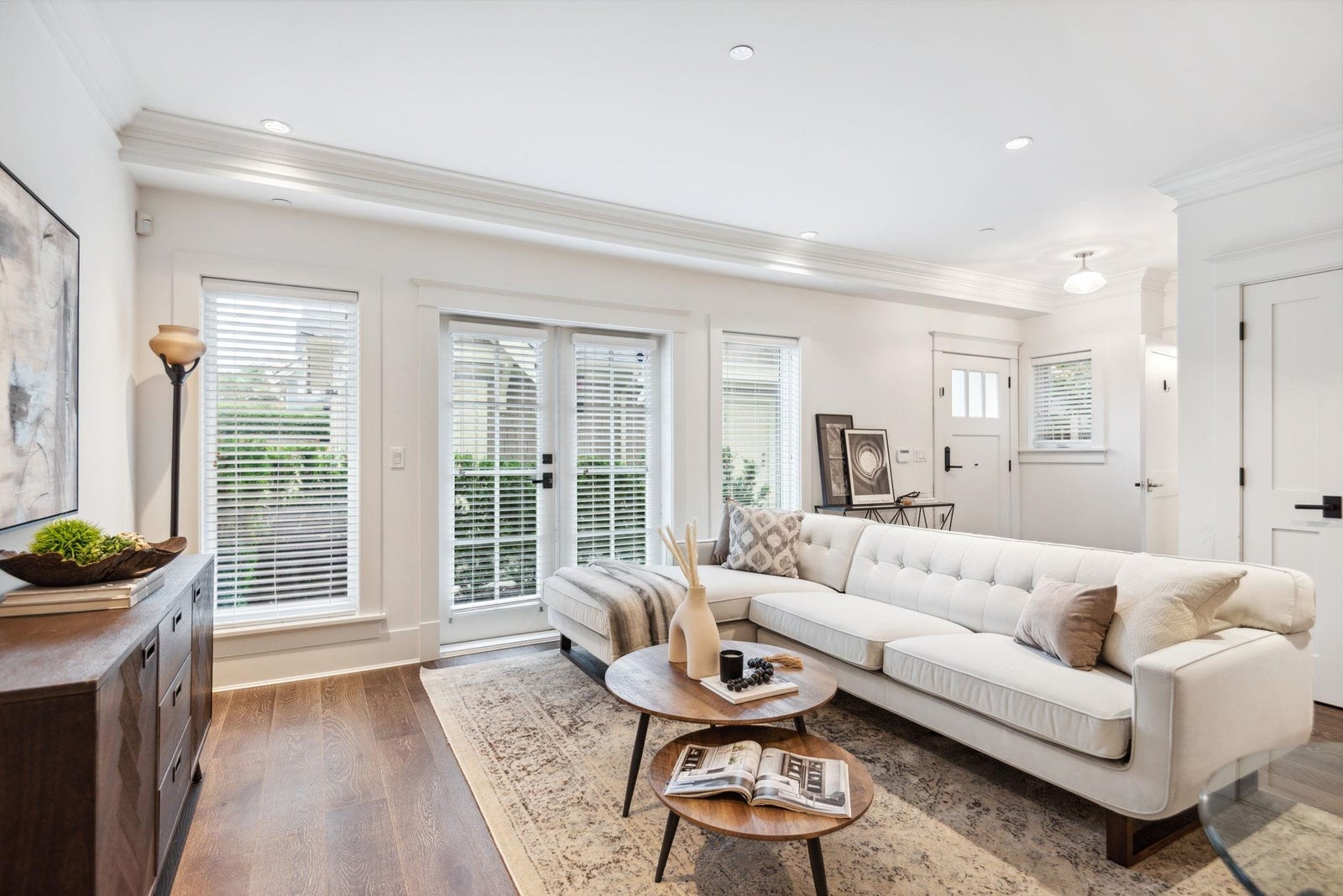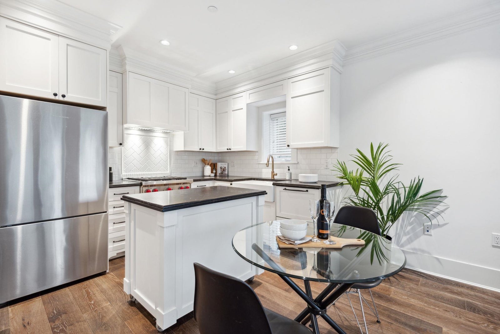 Welcome to 16th & Burrard Heritage by Formwerks - The only 1 bdrm garden level townhome amongst a collection of 12 refined homes appointed across 3 historical craftsman-style properties. Located in Lower Shaughnessy, this expansive 1 bdrm offers an exceptional open layout, large windows, radiant in-floor heating, walk-in closet & 143sf outdoor patio. Unmatched quality and interior details include Wolf range stove, Fisher & Paykel appliances, Vanilla Noir Quartz counters, shaker panel cabinetry, manor-house style aproned double bowl sink, automated lighting control system, & security system. Common bike & storage room.Steps to Granville Park, Shaughnessy's Lawn & Tennis Club & South Granville's famed shopping village.