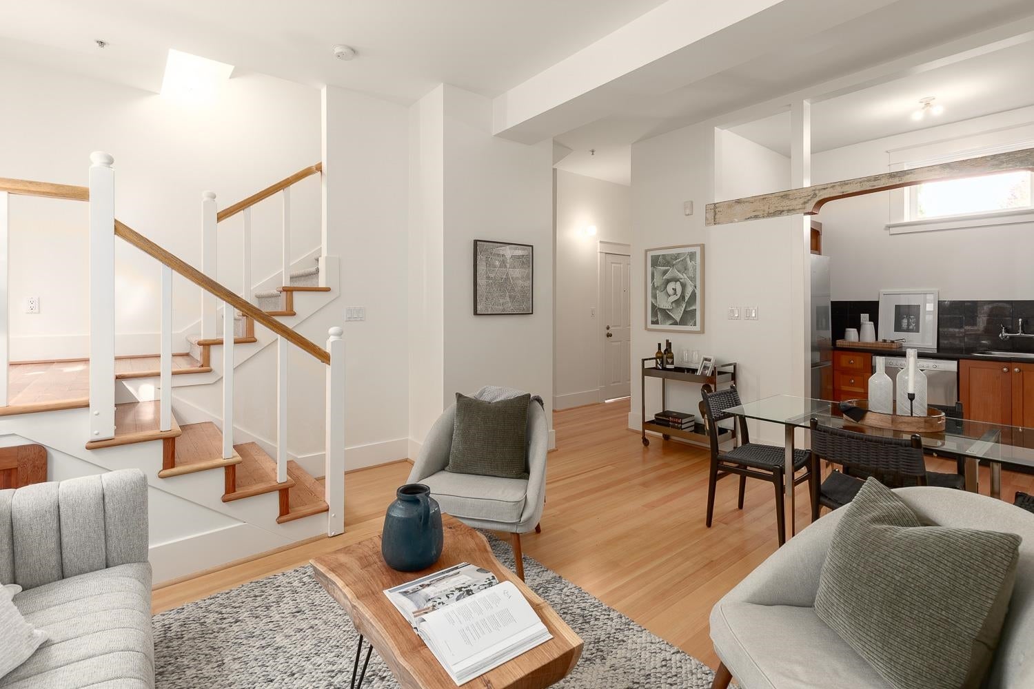 A true Strathcona gem on the west side of McLean Park. One of just 3 homes in a converted heritage building, this property was rebuilt in 1998 and recently refreshed to perfectly blend character with modern comfort. Main floor living flows to a sunny west-facing yard, with two bedrooms upstairs and a flexible top floor perfect as a primary suite, studio, or family room. Bright west windows & generous outdoor space invite light and connection. Overlooking lively McLean Park with a playground, spray park, & summer concerts—yet tucked on a quiet, traffic-calmed street. All this within one of Vancouver’s most vibrant communities, known for its creative spirit, walkable cafés, & engaged neighbours, while still just a short commute to downtown & the seawall.