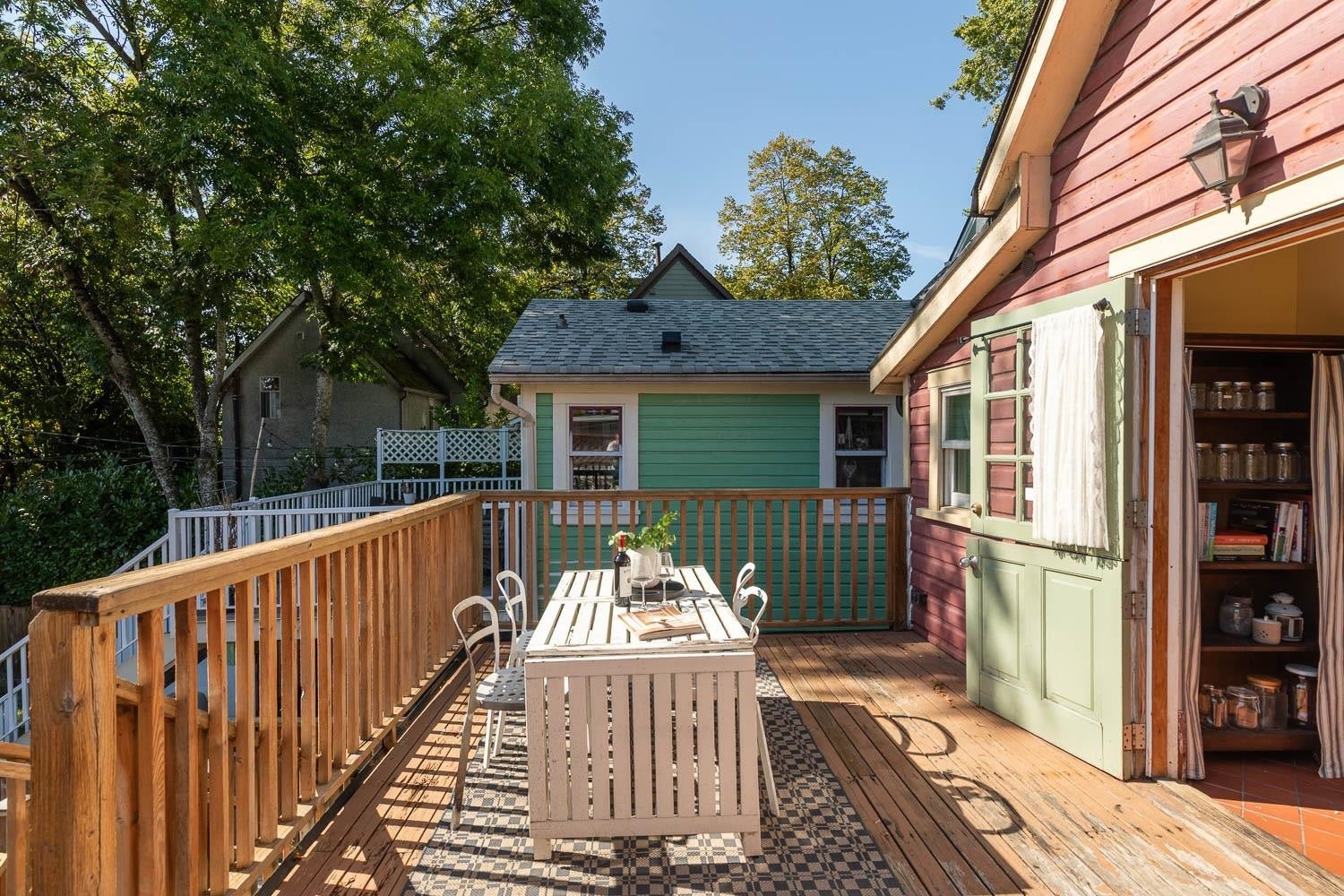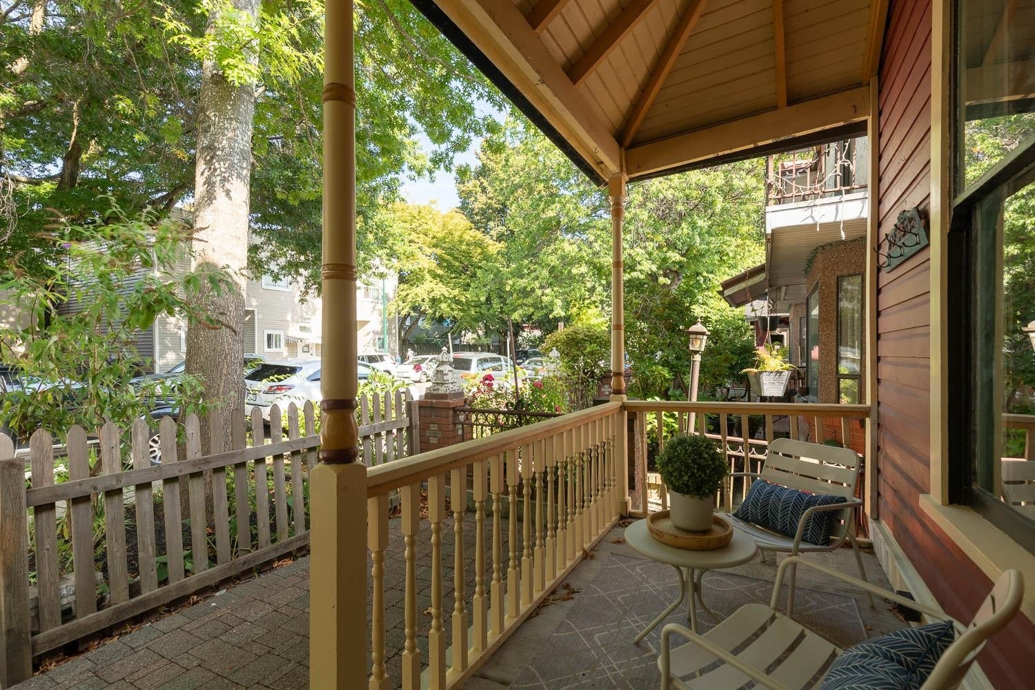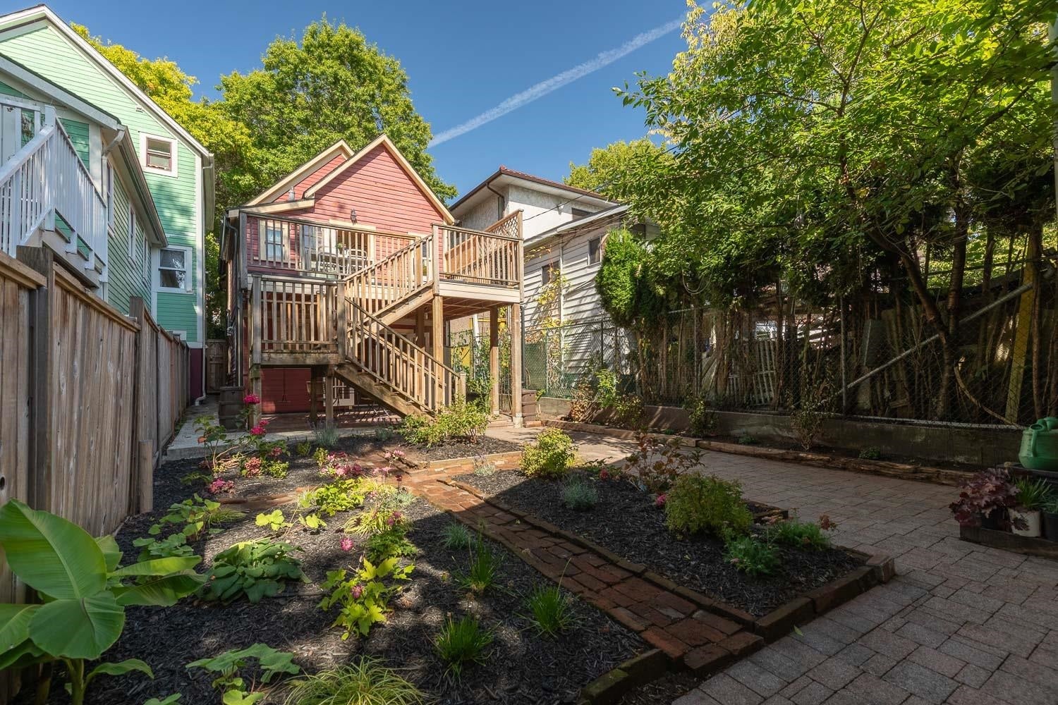 A welcoming front porch sets the tone for this Strathcona Character home offering the perfect spot to connect with this vibrant neighbourhood. The main floor flows as a bright open space with warm character details, a full bath and a sunny south-facing deck. The private backyard is a gardener’s delight, ready for outdoor dining & quiet retreats. Upstairs, a cosy loft provides a space for a bedroom, office, or reading nook. The lower level offers three bedrooms, a bathroom, and direct access to the garden. A newer double garage/ flex space with its own bathroom adds valuable flexibility as a studio, office, or creative workshop. This home blends heritage charm, thoughtful upgrades, and a flexible floor plan.