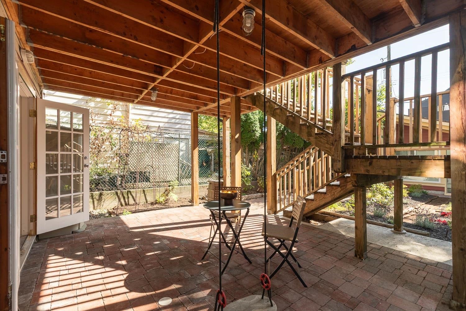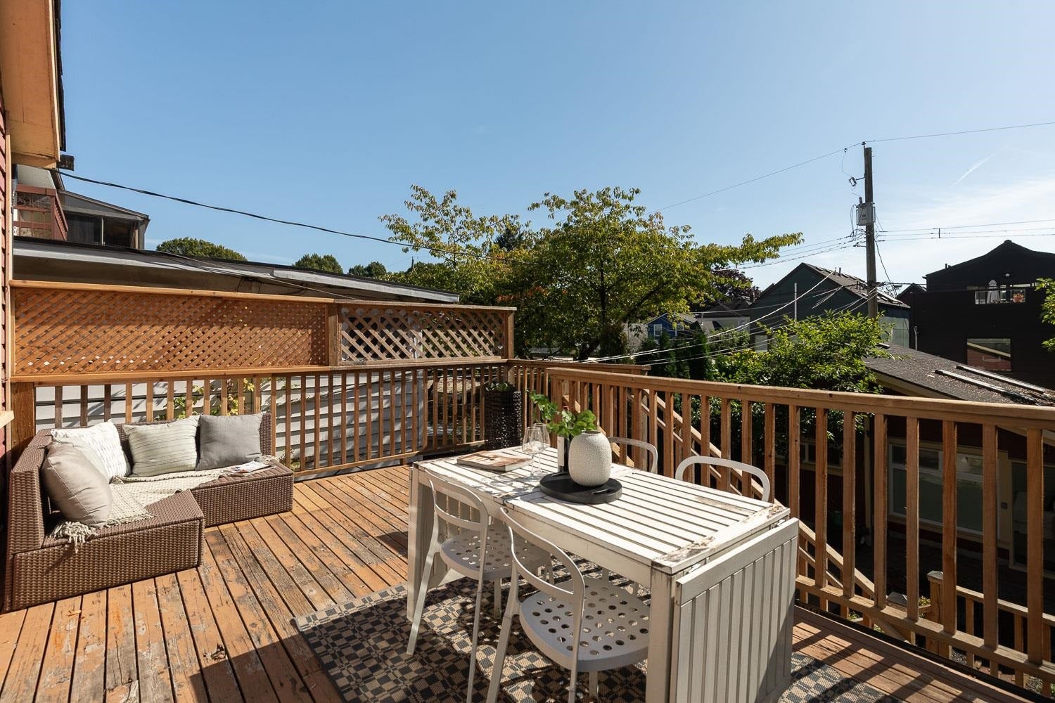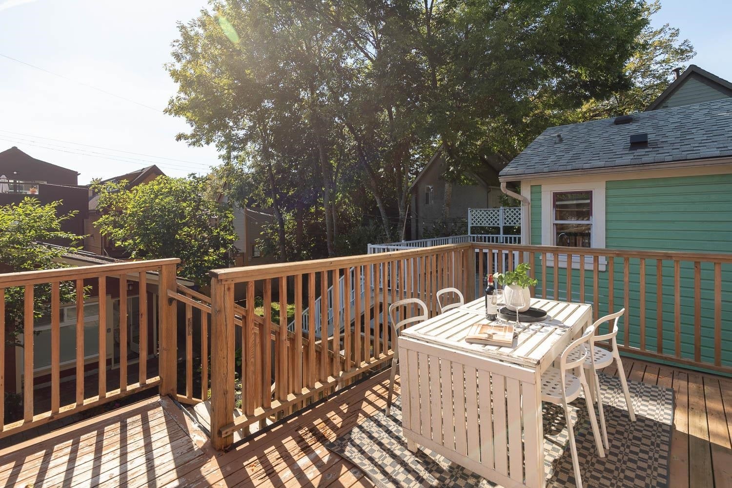A welcoming front porch sets the tone for this Strathcona Character home offering the perfect spot to connect with this vibrant neighbourhood. The main floor flows as a bright open space with warm character details, a full bath and a sunny south-facing deck. The private backyard is a gardener’s delight, ready for outdoor dining & quiet retreats. Upstairs, a cosy loft provides a space for a bedroom, office, or reading nook. The lower level offers three bedrooms, a bathroom, and direct access to the garden. A newer double garage/ flex space with its own bathroom adds valuable flexibility as a studio, office, or creative workshop. This home blends heritage charm, thoughtful upgrades, and a flexible floor plan.
